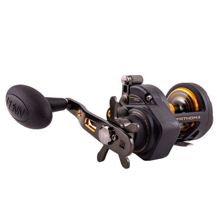 Die zweite Generation der PENN ® Fathom II Star Drag Multirolle kommt mit starrem Metallrahmen und Seitenplatten also sogar mit neuen Eigenschaften um sie noch anglerfreundlicher zu machen. Über die entfernbare Seitenplatte kann man schnell und effektiv auf das Getriebe und das HT-100 Bremssystem zugreifen und damit arbeiten. Das PENN ® Live Spindle Design bietet weite, mühelose Würfe, während die Getriebeübersetzung (nur bei ausgewählten Modellen) ein optimales Drehmoment gibt, um tiefstehende Fische einzukurbeln.
