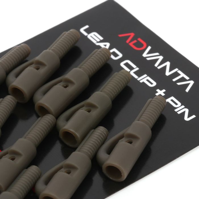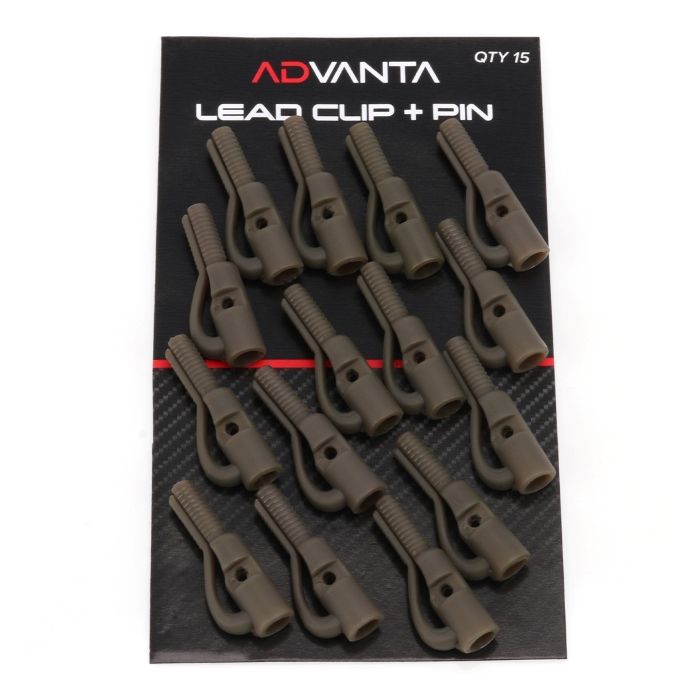 Advanta Lead Clip + Pin, The Advanta lead clip and pin system features a two-part lead clip to allow you to quickly adapt your rigs with a running lead arrangement or drop off style when required. With the swivel located in the end of the lead clip insert the pin into the body of the lead clip, this allows the lead to drop off when a bite occurs or alternatively remove if you want the rig to become free running. The lead clips and pin works in conjunction with AD1615 Tail rubbers and is compatible with all other items of tackle within the Advanta terminal range. The Advanta lead clip and pins are supplied in a pack of 15pcs making it great for anglers who want to make up rigs in advance and are made using a gravel brown colour to closely match the lake or riverbed naturally. The Advanta terminal tackle range has been designed to offer maximum performance and quality to anglers who fish a variety of waters for specimen fish. The Advanta Terminal tackle range features all the essential items to construct multiple rigs easily and affordably. Each item has been manufactured from the highest quality materials to ensure quality when it counts.
