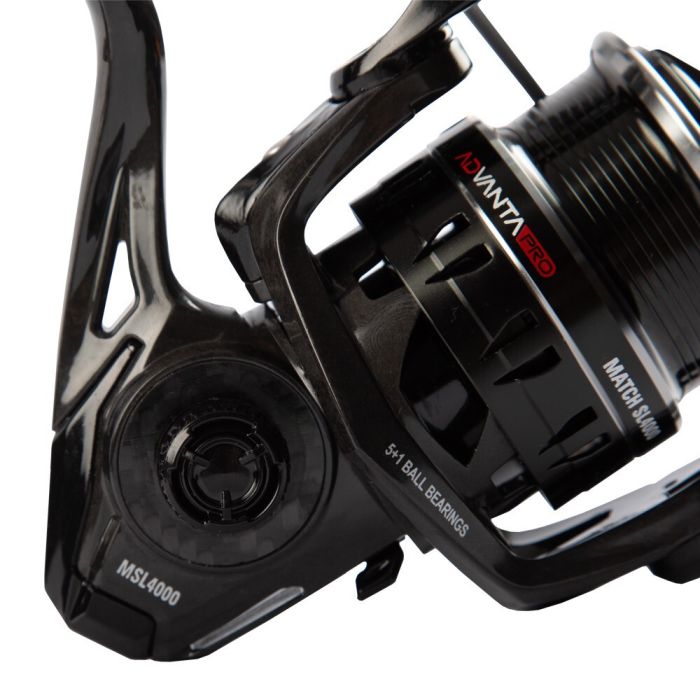 Advanta Pro Match SL4000 Fishing Reel, The Advanta Pro SL4000 reel features a host of impressive features and build quality and offers unrivalled performance and package for its price point. The SL reference in the name refers to the super Light element of the reel, this is achieved by the body being made of Carbon fiber, this reduces the overall weight of the reel. The Advanta Pro SL4000 has been designed to offer a reel for the angler who fishes a wide range of commercial and natural venues where tackle choice and approach vary considerably each time. The reel is supplied with 3 spools to cover these situations and line choices, one spool is deep and features a braid ready band and the other 2 are shallow spools ideal for commercial fisheries of float fishing where long lengths of line are not required. The Advanta Pro SL4000 is perfect for all coarse and match fishing situations and is suitable for both float or feeder fishing using mono or braid, the reduced weight of this reel lends itself greatly to the use of running line tactics and float fishing, especially on running water where the rod is held continuously during the days fishing. The extra tough carbon body will not only feel great but also reduce fatigue when casting and striking for extended periods of the day. The body houses the smooth worm drive system used within the reel. The carbon body ensures all internal components are firmly secured and will not distort even when faced with large fish on still or moving water. The reel also features a smooth wide range drag system that can be adjusted for various situations. The Advanta Pro S4000 also features a high-quality reel and spool case that features a separator for the reel and spare spools meaning you can safely carry the reel with all the spare spools securely.