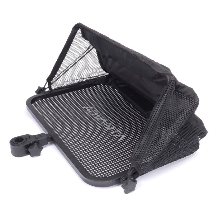 The Advanta Protector Deluxe side tray is made from a lightweight aluminium and features a perforated tray to reduce weight further making it easy to carry and a protective hood that can be positioned to cover the side tray completely if required. The benefit of this style of tray is that it can cover your bait to keep it cooler and fresher during hot and sunny days and protect it from the elements on damp or wet days. The cover is retractable and can be positioned fully open or covering the entire side tray completely. The trays size of 50 x 35cm is suitable for most anglers and will easily accommodate bait boxes, bait bowls and essential items such as a drink and phone etc. The Advanta side try uses an additional support leg to give your seat box setup a rock-solid footing. The Advanta deluxe side tray features an easy-to-use clamp design which can be connected to your box via the twin universal adapters, included are 2 spacers to allow the item to be used on a wide range of leg options from 25mm square up to 36mm round, meaning it can be used on most seat boxes on the market today.