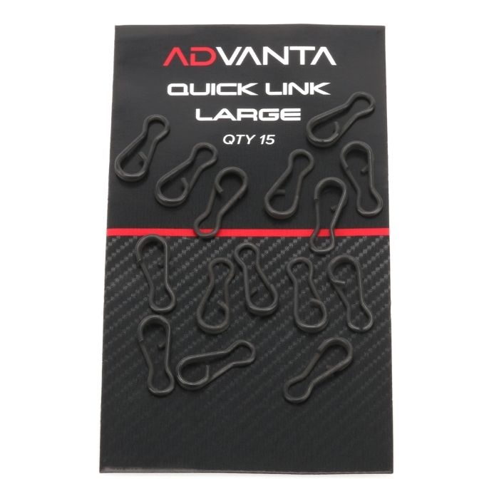 The Advanta Quick links are the ideal item to allow you to join your rig quickly and easily to you mainline or leader. The Advanta Quick links are available in two sizes to suit the style you are fishing and are supplied in packs of 15 for anglers who like to prepare multiple rigs before their session. Each quick link is finished in a matt black colour to ensure your rig is concealed on the lake or riverbed. The Advanta Terminal tackle range features all the essential items to construct multiple rigs easily and affordably. Each item has been manufactured from the highest quality materials to ensure quality when it counts.