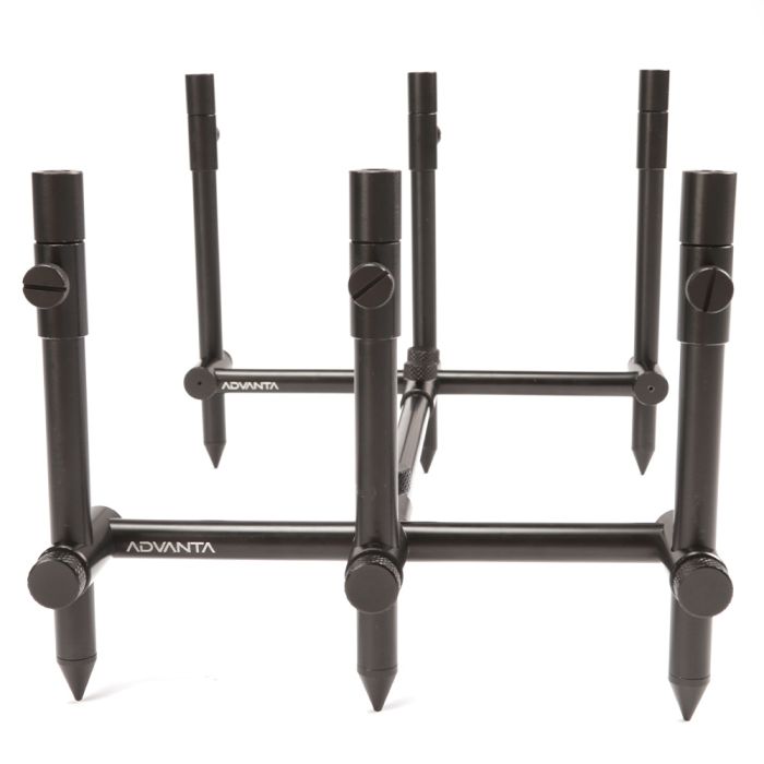 Advanta Session+ Rod Pod - 3 Rod, The Advanta Session Rod pod is the ultimate in rod support for all types of swims from grassy banks to hard platforms where pods are required, this pod does it all. The Advanta Session+ pod is made from high quality ultralight aluminium and can accommodate 3 rods in 3 different ways. The Advanta Session+ rod pod can be used as a conventional pod, single sticks, or a singles type construction where the anti-twist supports come into action. The Advanta Session+ rod pod come supplied in a handy carry case that’s been made as compact and user friendly as possible meaning it takes up very little room in a rucksack or carryall.