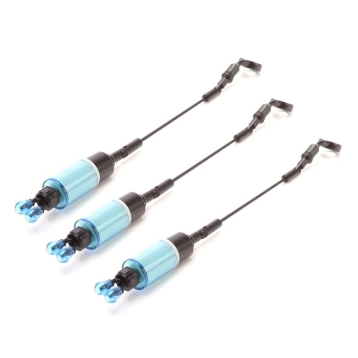 Advanta Straight Arm UV Bobbin Kit - 3 Piece, The Advanta UV bobbin straight arm kit features a unique and handy UV glow internal body for easy identification in the dark, the internal body of the bobbin is made using a luminescent material that will give off a subtle glow in the night allowing you to visually identify if one has moved and adding a reference point to where the rods are positioned in the night. The Advanta Bobbins also feature a variable tension clip to enable you to set the tension to the fishing situation or thickness of line or braid you are using. The UV body on the Advanta bobbins not only glows in the dark but also has a small housing for a beta light if additional visual reference is required. The Advanta bobbin kits feature a straight arm for maximum responsiveness, this aids with bite indication and can also significantly reduce false bites and bleeps in windy conditions. The Advanta UV Bobbin kits are available in Red, Green Blue and Purple to match the most popular bite alarm LED colours and are sold as singles or as packs of three for anglers who prefer to use multiple rods.
