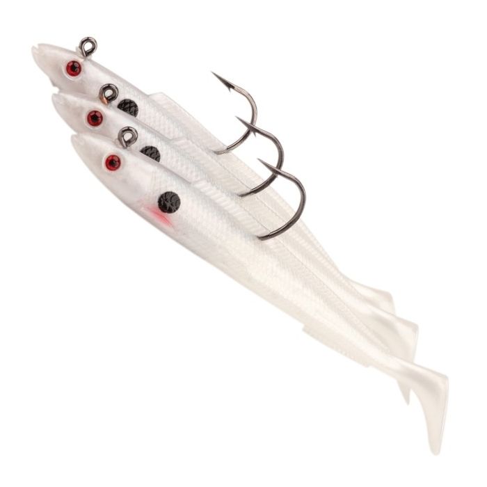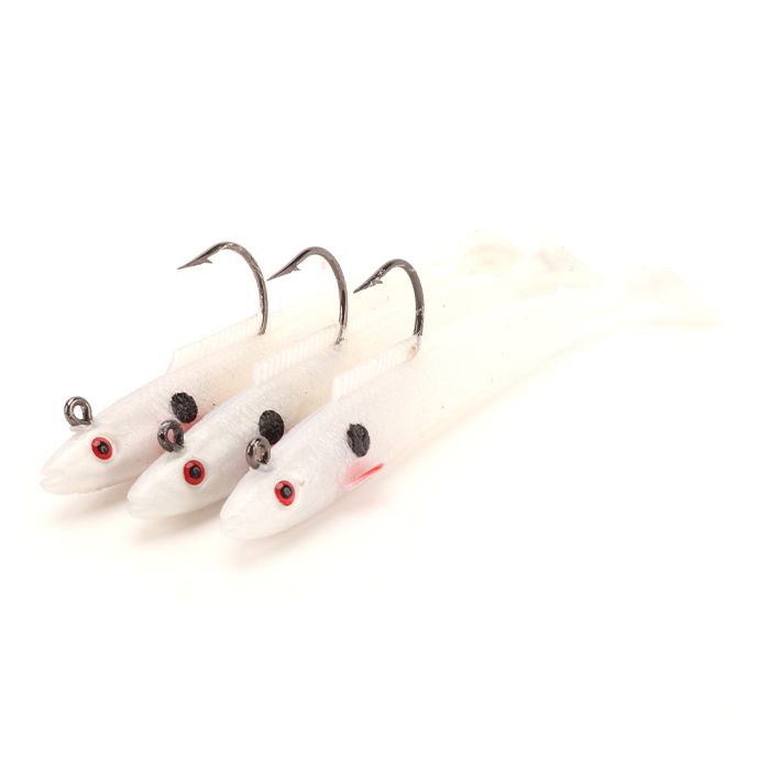 Advanta Super Sandeel Lure - Pearl White, The Advanta Super Sandeel lure's are an amazing weighted Sandeel imitation with a lifelike action which is guaranteed to get the attention of all predatory fish. The body material is made of ultra-tough material that withstand multiple captures and fish with teeth nipping the tail. The Advanta Super Sandeel lures are all pre-rigged with an internal lead weight at the head end meaning they cast like a dream and are stable when retrieving them. The hooks used are the highest-grade Mustad saltwater hooks to ensure every fish is well hooked and the hook points remain super sharp even after multiple fish are caught. The 4 inch lures weight 11g and the 6 inch weight 25g meaning you the perfect weights for a wide variety of tactics and venues. The lures are ultra-versatile and can be used from the shore or boat.