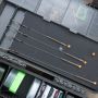 Made from high impact plastic, to ensure that this fishing tackle box will withstand any hits or dinks when out on the bank. This Advanta Tackle Box features a removable high density rig board in the top of the tackle box which is perfect for keeping all the rigs needed for a session. This fishing rig box is also supplied with pins to secure the rigs once tied, so you can quickly select what rig you need. Advanta have designed the base of this tackle box to be 5.5cm deep making it perfect for holding larger tackle accessories such as line and tools. In the base of the tackle box, there are also 2 removable accessory boxes supplied, perfect for keeping specific rig bits together.
