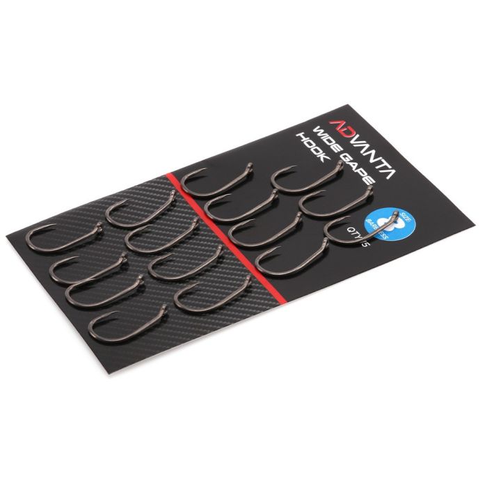 Advanta wide gape hooks offer super sharp points with a matt finish PTFE coating to ensure your rig blends in and holds firm when a fish is hooked. Advanta Wide gape hooks are an all-round hook which is very versatile and can be used for many different rigs. The Advanta wide gape hooks feature ultra-sharp beaked point to maximise penetration and point protection. The Advanta wide gape hooks are manufactured from the finest High Carbon Steel. Each pack contains 15 hooks and are available in sizes 4, 6, 8, in both micro barbed and barbless. The Advanta terminal tackle range has been designed to offer maximum performance and quality to anglers who fish a variety of waters for specimen fish. The Advanta Terminal tackle range features all the essential items to construct multiple rigs easily and affordably. Each item has been manufactured from the highest quality materials to ensure quality when it counts.