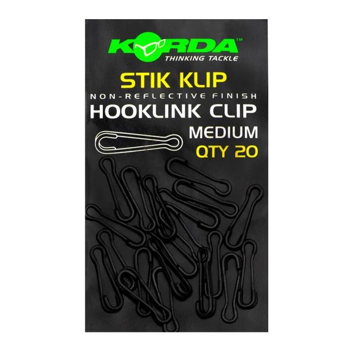 Les changements de montages rapides et simples rendent les choses tellement plus faciles, c'est pour cette raison que chez Korda nous utilisons maintenant un lien sur tous nos montages, que nous utilisions un stik ou non. Le premier est le Kwik Link, qui peut être utilisé pour n'importe quelle forme d'attache, que ce soit un plomb ou un montage. Le seul problème que nous avions était que lorsque nous les utilisions pour attacher un harnais, ils pouvaient être un peu délicats par temps froid, donc une option plus facile était nécessaire. C'est ainsi qu'est apparue cette petite beauté ! Le Stik Klip ; une agrafe non-réfléchissante simple à utiliser, cruciale pour des changements rapides mais assez solide pour les requins (enfin, pour les carpes massives !).