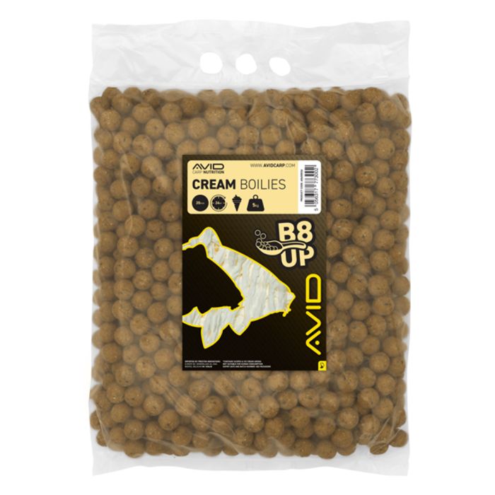 La bouillette B8-Up Cream présente une couleur jaune naturelle, ce qui la rend visuellement attrayante dans l'eau. Son profil de saveur est sucré et crémeux, avec un goût Scopex clairement reconnaissable, en faisant un appât polyvalent et très attractif pour les carpes.
