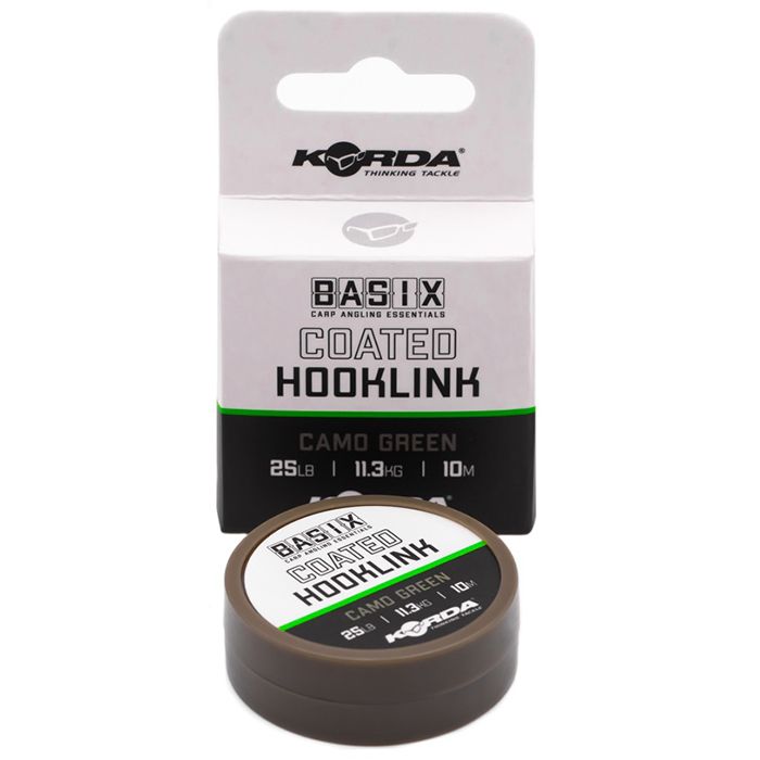 Les Bas de Ligne Revêtus BASIX sont des tresses enduites souples et douces qui peuvent être utilisées pour réaliser toutes sortes de présentations d'appâts de pêche, y compris les appâts de fond, les wafters et les pop-ups. Le Bas de Ligne Revêtu Korda Basix est livré sur une bobine de 10m et un choix de 18lb ou 25lb breaking strains qui devrait être suffisant pour vous durer longtemps et pour attacher beaucoup de rigs !