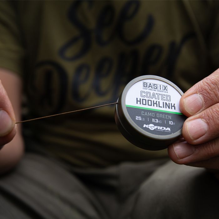 Le Bas de Ligne Revêtu Korda Basix est conçu pour se fondre dans l'environnement, afin que vous puissiez attraper plus de poissons. La subtile couleur vert camouflage de sa tresse intérieure et de son revêtement extérieur vous aidera à vous assurer qu'il est difficile pour vos espèces cibles - qu'il s'agisse de grosses carpes ou de barbeaux !