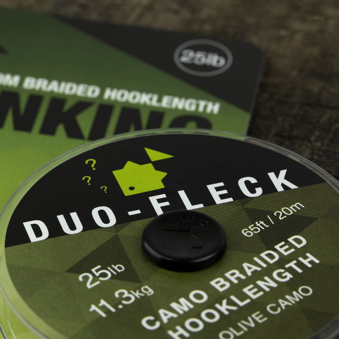 Une bobine de tresse camouflage avec un cœur coulant PTFE. Notre tresse Duo-Fleck douce est idéale pour les bas de ligne souples, les sacs PVA solides, les montages combi, et une variété de pêche spécialisée. Disponible en résistances de 20lb et 25lb.