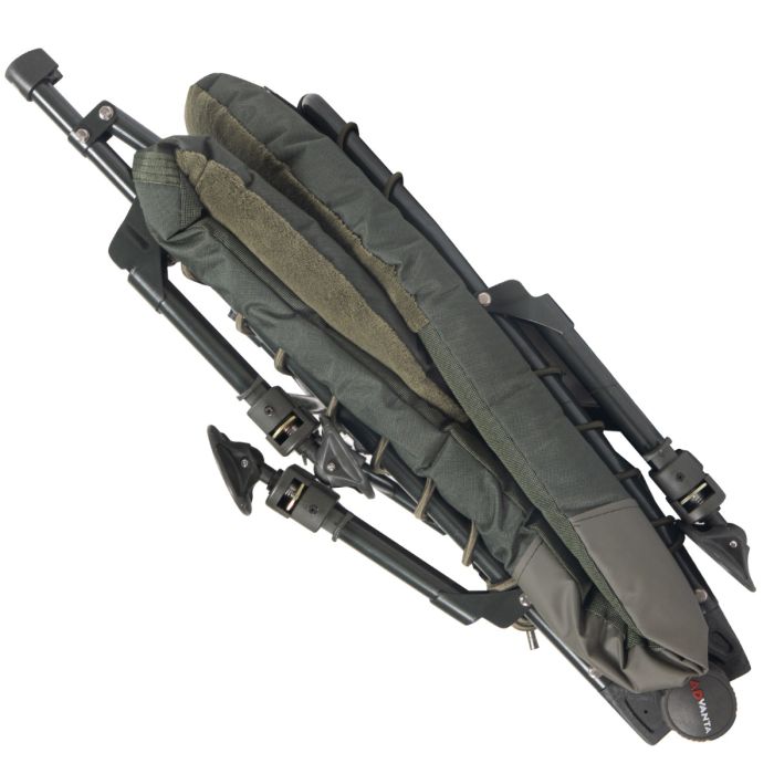 Avec six pieds, ce bedchair offre une stabilité exceptionnelle. Pour améliorer davantage sa stabilité, Advanta a rendu possible l'ajout de coupelles anti-boue pivotables sur chacun de ses pieds. Vous avez donc la garantie que, peu importe le terrain, ce bedchair ne vacillera pas dans la nuit à chacun de vos mouvements. Et ce n'est pas tout ! Vous pouvez régler chacun des six pieds indépendamment. Cela vous permet de vous assurer que vous avez une couche parfaitement plane vous permettant de profiter d'une bonne nuit de sommeil. L'un des plus grands avantages de ce bedchair est son inclinaison réglable à l'aide d'une roue à cames. Si vous vous prélassez sur votre bedchair entre les prises, remontez-le pour offrir un appui de qualité supérieure à votre dos. La polyvalence de ce bedchair en fait l'option idéale pour le pêcheur qui aime voyager léger, car elle offre une excellente alternative au fauteuil de pêche classique. En dessous de ce bedchair, vous trouverez une grande poche zippée. C'est l'endroit idéal pour conserver tous vos objets de valeur, y compris de l'argent en espèces que vous pourriez avoir avec vous.