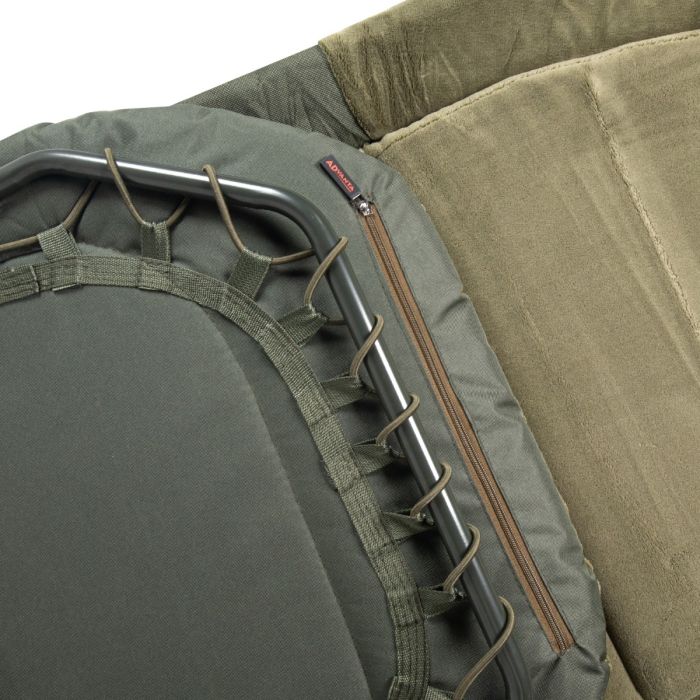 Tout d'abord, ce bedchair est équipé d'un matelas en mousse à mémoire de forme. La mousse à mémoire de forme est une matière nettement plus confortable que la mousse traditionnelle. Épousant littéralement la forme de votre corps, elle vous offre un appui de haute précision là où vous en avez le plus besoin. Fini les réveils avec une raideur de nuque et du dos après une mauvaise nuit de sommeil. Avec ce bedchair Advanta , vous vous réveillerez en pleine forme après une nuit reposante, et serez prêt à pêcher ! Le matelas en mousse à mémoire de forme est complètement amovible. Vous pouvez donc très facilement le nettoyer s'il fait les frais de la crasse ou de la salissure indissociable de la vie sur le rivage. Ce bedchair a été conçu pour être utilisé tout au long de l'année. Son matelas est recouvert d'un molleton. Ce matelas est donc parfaitement adapté à la pêche par temps froid, car il offre une isolation supplémentaire et conserve votre chaleur corporelle sur le bedchair, vous assurant ainsi une nuit paisible et au chaud sur la rive, même par les temps les plus froids. Une autre caractéristique relative au confort et qui fait la fierté du bedchair Advanta Endurance est sa jupe rembourrée ; vous n'aurez jamais de mauvaise surprise dans la nuit s'il vous arrive de vous rouler vers le bord du bedchair !