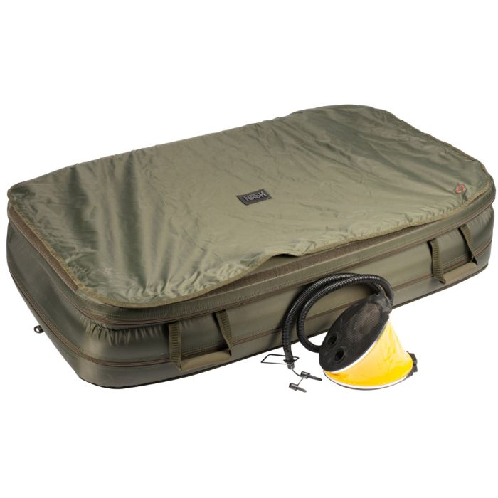 Les Berceaux à Air avancent les soins des carpes, améliorant la protection, praticité, et réduisant la masse de rangement. La distribution de forme et poids fait en sorte qu’il soit impossible pour la carpe de se blesser dans le Berceau à Air - même le plus lourd des poissons qui gesticule lors du décrochage et de la photographie est protégé à tout moment. Les Berceaux à Air utilisent trois tubes gonflables résistants, deux soutenant la matière de base pour l’élever du sol, et le troisième fournissant une zone sécurisée pour contenir une carpe pour le décrochage.