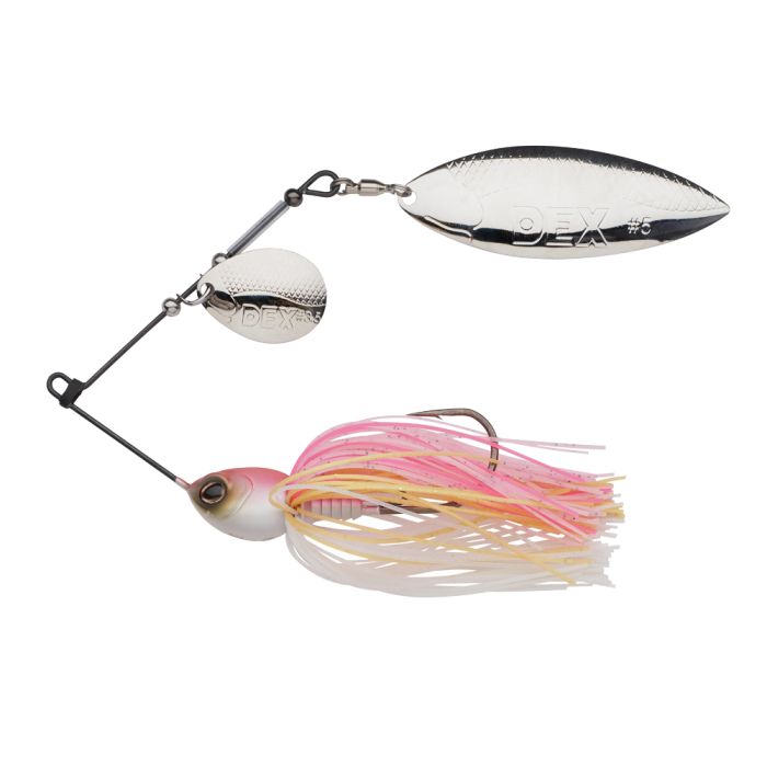 The DEX Spinnerbait is a premium finesse spinnerbait made with the most high-end materials available. The Colorado and Willow blades are mounted on a durable titanium frame. Due to the high-density tungsten head, the spinnerbait has an extremely low center of gravity which makes the bait very stable in the water. The DEX spinnerbait features a hand-tied, flexible skirt and has a chemically sharpened hook.
