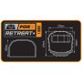 La tente de bivouac Fox Retreat+ 1 Place est exceptionnellement polyvalente. Elle le doit à son dôme intérieur en moustiquaire vendu soit séparément, soit en un package avec le dôme principal du biwy. Le dôme intérieur élève vraiment le niveau de confort intérieur du biwy. Il vous permet de pêcher avec l'avant de la tente complètement enlevé tout en restant protégé de tous les insectes de la berge. Ce biwy Fox est livré avec un tapis de sol renforcé, un système complet de support de structure, des sardines renforcées et un très grand sac de transport.
