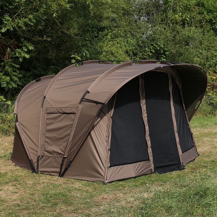 La première chose que vous remarquerez probablement à propos de ce biwy est sa taille impressionnante. En fait, avec des dimensions de 335cm x 230cm x 185cm, il serait difficile de ne pas le faire ! Une hauteur de 185 cm, équivalent a 6 pieds, cela signifie que vous pourriez vous tenir debout facilement dans ce biwy, vous n’aurez donc pas à passer tout votre temps dehors. Une longueur de 335cm signifie que vous pouvez stocker confortablement deux bedchairs dans le sens de la longueur, laissant ainsi d'espace pour ranger tous vos autres articles et vos bagages. Le biwy a une largeur de 230 cm et vous pouvez installer trois bedchairs standard dans le sens de la longueur du biwy. Ceci est parfait pour les pêcheurs qui aiment pêcher avec des amis, car vous pouvez confortablement accueillir trois pêcheurs en un seul grand biwy. Le biwy a des côtes allongées ''split rib'', ce qui permet de maximiser l'espace intérieur, ainsi qu'un arrière plus plat qui vous permet plus d'espace utilisable pour vos bedchairs et bagages.