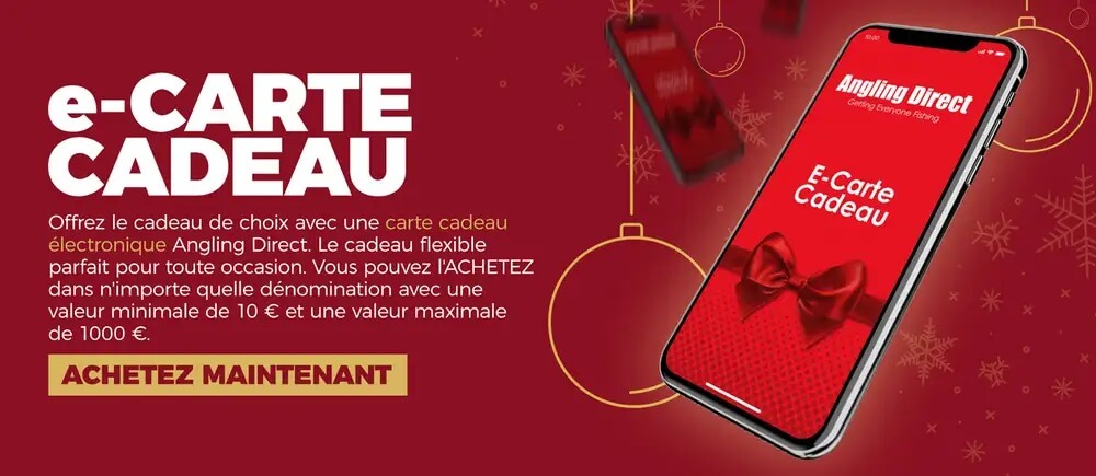 Nous encourageons l'achat de nos cartes électroniques Angling Direct car elles sont parfaites pour une panique de Noël de dernière minute et n'utilisent aucun déchet de plastique ou de papier car elles sont toutes électroniques ! Le destinataire du cadeau utilise simplement un code envoyé par e-mail qui peut être échangé instantanément lors d'un achat chez Angling Direct en ligne ou en magasin ! Vous pouvez également personnaliser votre carte cadeau électronique !