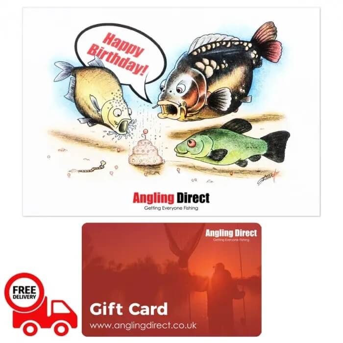 Pour personnaliser davantage votre carte cadeau, vous pouvez acheter des cartes cadeaux vendues avec une carte de vœux Angling Direct. Pour Noël, les anniversaires et les célébrations, nous avons l'artiste talentueux Stann Art qui illustre des carpes intelligentes sur lesquelles vous pouvez ajouter votre message personnel.