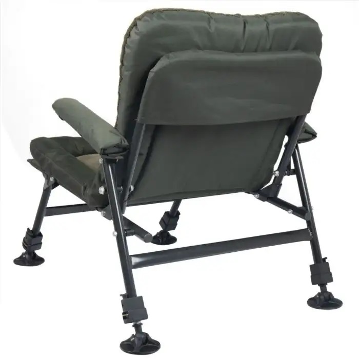 La chaise est généreusement rembourrée pour vous offrir un confort maximal, de sorte que lorsque votre poisson prend, vous pouvez vous lever de la chaise et passer à l'action sans les courbatures habituelles que vous ressentez lorsque vous êtes assis sur d'autres chaises de pêche moins ergonomiques. Les accoudoirs intégrés vous permettent de vous détendre dans le plus grand confort en attendant la prise de votre poisson cible. La chaise est dotée d'un revêtement en daim, ce qui vous permet d'être à la fois élégant et confortable sur la berge, sans l'entretien requis par le daim véritable.