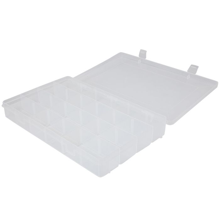 Fabriquée en plastique transparent, elle vous permet de voir rapidement et facilement ce qu'elle contient, tandis que les clips solides et la construction de qualité vous protègent contre les ouvertures accidentelles pendant que vous vous rendez à votre emplacement.