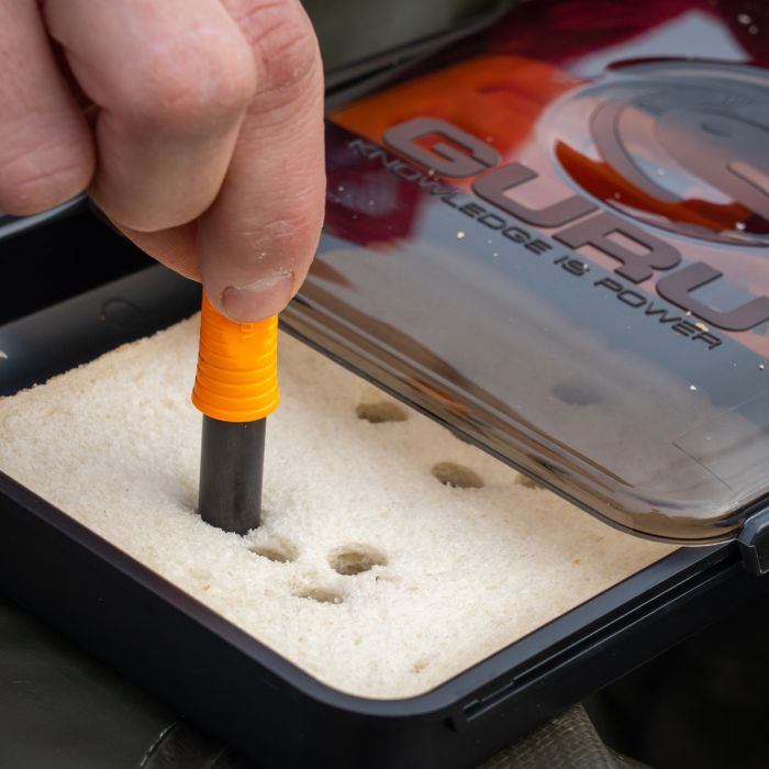 Guru a le plaisir de vous annoncer leur nouveau produit qui est sûr de monter tout en haut de la liste des envies de tout pêcheur au coup ou de plaisir, la Boîte à Appâts Guru Punch. Offrant un rangement d’appât intégré et un système de protection avec quatre tailles de Push Punch, c’est la solution parfaite pour garder votre pain ou vos appâts carnés au frais avec un moyen efficace de ressortir les appâts hameçons. Le dirigeant de la marque Guru, Adam Rooney, explique comment ce produit s’est créé : Avec de plus en plus de personnes qui utilisent des appâts punched dans la pêche au coup, surtout du pain, l’équipe Guru a senti qu’il y avez un trou dans le marché pour un punch à appât de bonne qualité qui pourrait s’adapter à toute une gamme d’appâts. Pour aller avec, nous voulions fabriquer un système de rangement pour tenir les punchs et l’appât ensemble. Le système de rangement devait faciliter l’accès à l’appât et, surtout, le maintenir dans la meilleure condition possible. Après des mois de recherche, un ancien produit qui datait de plus de 15 ans a provoqué une idée. Avant, sur les canaux, la Boîte à Pain Image était un élément de kit essentiel – un bac simple avec un couvercle glissant, pour vous permettre de ranger le pain, puis de glisser le couvercle, puncher un bout, puis de le refermer, pour maintenir votre pain sec et dans la condition parfaite.