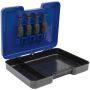 Le Kit Punch est idéal pour créer l’esche parfaite, il garde aussi vos esches à l’abri des intempéries, quelque chose de très important avec le pain surtout. La boîte peut être ouverte en utilisant uniquement une main en pressant simplement le bouton, ainsi le couvercle s’ouvre et vous êtes prêt à préparer vos esches. Les emportes pièces sont rangés à l’intérieur du couvercle et peuvent être retirés un par un, l’emporte-pièce que vous utilisez peut-être rangé dans un compartiment à part pour une efficacité optimale. Il y a 4 emportes pièces inclus dans le pack, 6mm, 8mm, 10mm, 12mm. Chaque emporte-pièce possède un ressort qui permet de bloquer l’emporte-pièce et réaliser des pièces de 2mm d’épaisseur, si vous débloquez le ressort vous pourrez réaliser des pièces plus épaisses. Chacun des emportes pièces possède une poignée ergonomique et un tube bleu anodisé avec les bords coupants afin de prélever les pièces facilement et rapidement. La boîte est parfaitement dimensionnée pour contenir une tranche de pain mais peut aussi être utilisée efficacement pour la viande et les bouillettes.