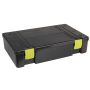 Parfaite pour garder tout votre matériel organisé à la rive ou à la maison. Idéale pour ranger des objets tels que: des feeders, flotteurs, bobines de ligne, ou accessoires. Diviseurs internes amovibles alors les compartiments peuvent être personnalisés. Moulée à partir de plastique PP extrêmement durable. Finition gris foncé translucide permet la visibilité des articles rangés dedans mais protège contre la lumière UV.