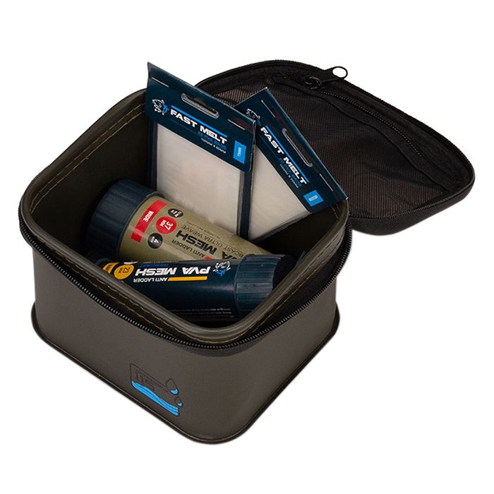 La plus petite dans la gamme Waterbox sont les poches Séries 100, conçues pour le matériel de montage, les recharges de PVA, les outils d’amorçage, et tout autre essentiel pour la création de montages, le réamorçage etc. Toutes sont fabriquées à partir d’EVA 0.8mm durable avec une base renforcée 1mm, finies avec des tireurs de zip para corde stylés, des couvercles teintés avec logo Nash moulé, plus une fermeture éclair inversée à 3 côtés pour plus de résistance à l’eau.
