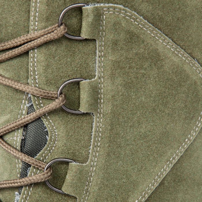 La tige de la botte est en daim, avec un laçage sécurisé qui vous maintient bien chaussé, quel que soit le terrain que vous traversez, et l'intérieur en laine peut être retiré et lavé, assurant un confort et une hygiène à long terme.