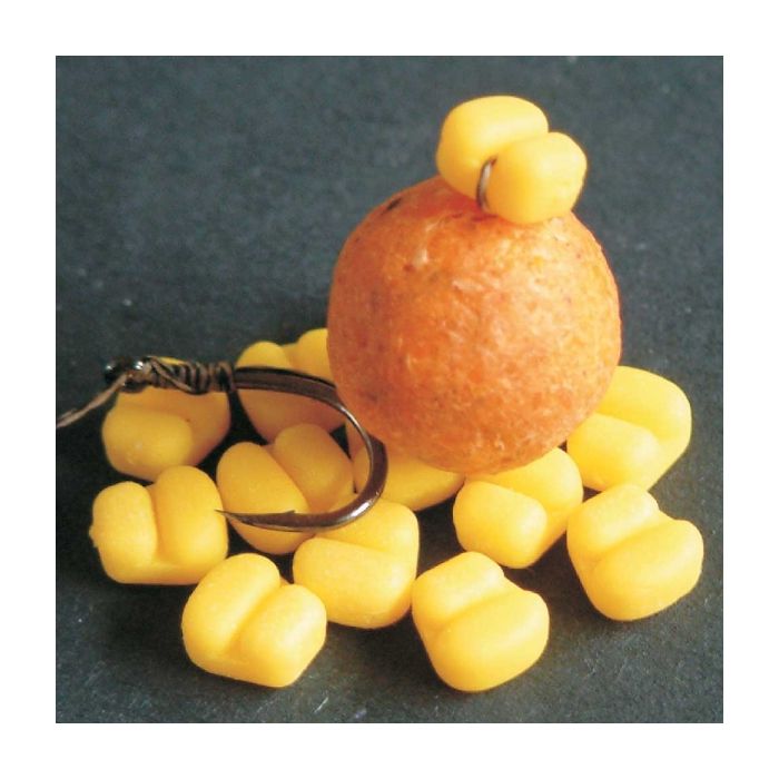 Nos graines de maïs bouchons cheveux flottants combinent les caractéristiques d’attraction de poisson de notre imitation maïs, avec la praticité d’un bouchon cheveu, éliminant le besoin d’un bouchon type haltère traditionnel. Idéal pour utilisation avec des bouillettes, pellets, noix, etc, agissant comme point de vision pour augmenter encore plus leur attraction, une tactique que beaucoup des meilleurs carpistes ont adopté. Leur flottabilité aide à équilibrer le poids de l’appât, augmentant les chances d’une prise. Directions d’utilisation : Il suffit simplement de placer le maïs bouchon cheveu, côté à rainures vers le haut, dans la boucle cheveu avant de tirer le cheveu, assurant que la boucle s’installe dans le fond de la rainure. Bouchon cheveu et cheveu combinés. Utilisez-le au lieu d’un bouchon cheveu traditionnel pour augmenter l’attraction de bouillettes, pellets, etc.