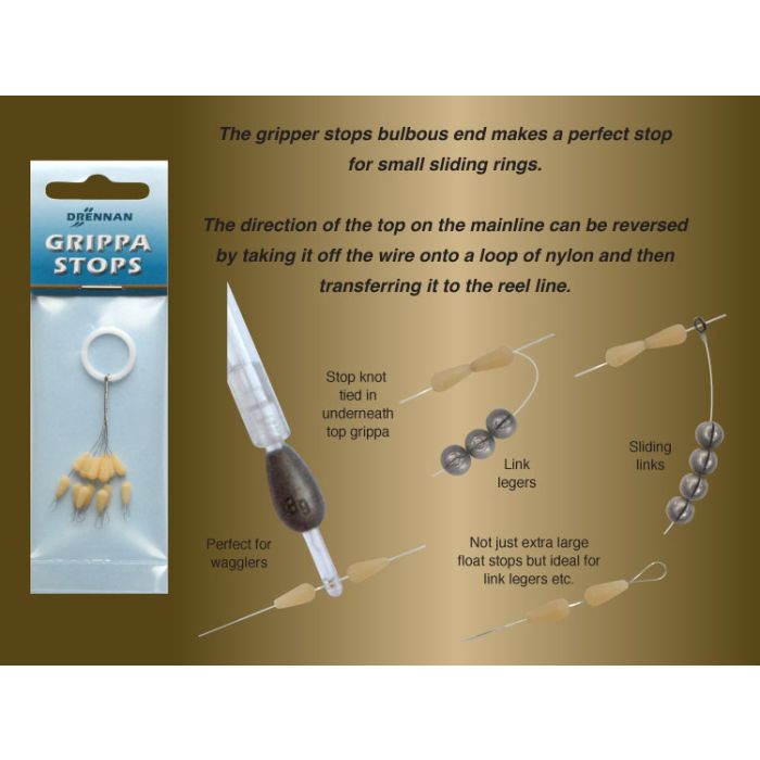 Ces Bouchons Drennan Grippa sont des bouchons flotteurs en caoutchouc extra large coniques. L’extrémité bulbeuse du Bouchon Grippa est un bouchon parfait pour des petits anneaux glissants, ou pour verrouiller des wagglers en position. La direction du bouchon sur la ligne principale peut être inversée en l’enlevant du fil et le mettant sur une boucle de nylon, puis en le transférant sur la ligne de moulinet.