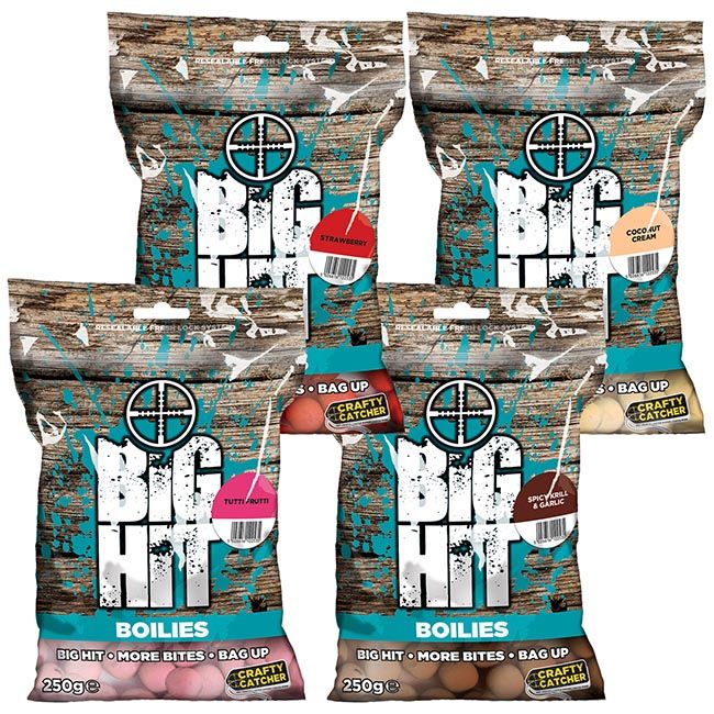 Les paquets pratiques Big Hit 250g donnent la quantité parfaite pour les sessions courtes ou lorsque les bouillettes sont utilisées en petites quantités. Idéal également pour les appâts. Disponible dans les saveurs classiques: Fraise et Tutti Frutti. Ainsi que les parfums plus récents et populaires Coconut et Spicy Krill. Avec des tailles de 10mm et 15mm dans la gamme, ces appâts seront populaires auprès des pêcheurs ciblant une grande variété d'espèces, y compris la carpe, la tanche et la brème.