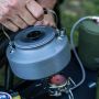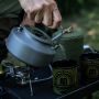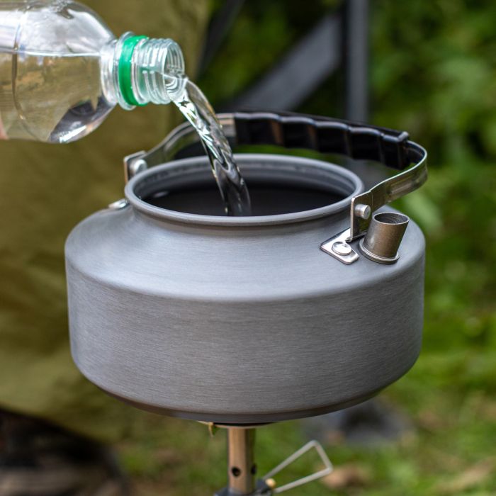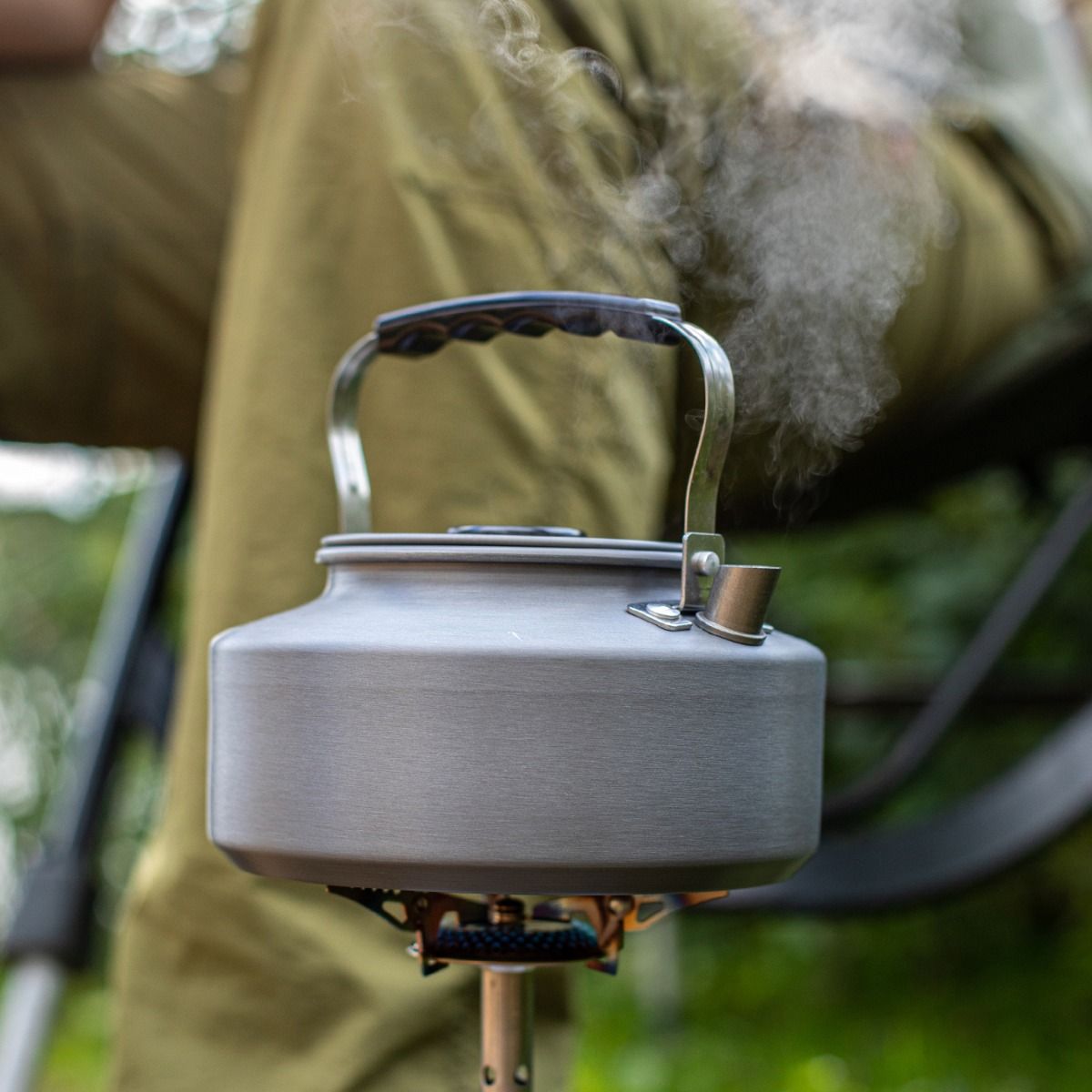 Fabriquée à partir d’alliage en aluminium anodisé et d’acier inoxydable, ceci est une bouilloire résistante et durable, qui est assez robuste pour résister à la vie de rive, tout en étant assez légère -à 170g- pour être rangée dans votre kit de journée pour une conclusion réchauffante à votre session courte, ou être ajoutée à une brouette chargée sans causer des soucis si vous prévoyez une session de pêche à la carpe qui dure tout le weekend. 1.1L ne semble peut-être pas être beaucoup, mais c’est l’équivalent de trois bonnes tasses – idéal pour vous soutenir pendant une session en solo longue, et parfait si vous passez seulement quelques heures à la rive avec des amis ou de la famille.