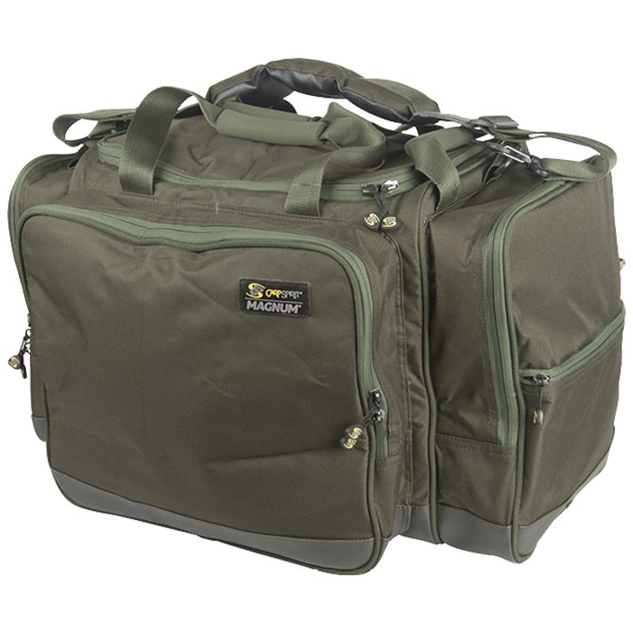 Grand compartiment principal, parfait pour les vêtements ou les grands accessoires. 2x poches zippées latérales rembourrées, et 2x poches d'accès rapide, parfait pour les accessoires. La poche frontale principale entièrement rembourrée est compatible avec de grandes boîtes de taquette de carpe. Poche avant rembourrée supplémentaire sur la taille XL. Poignées de transport Eva et bandoulière EVA entièrement réglable. Base renforcée intense. P>