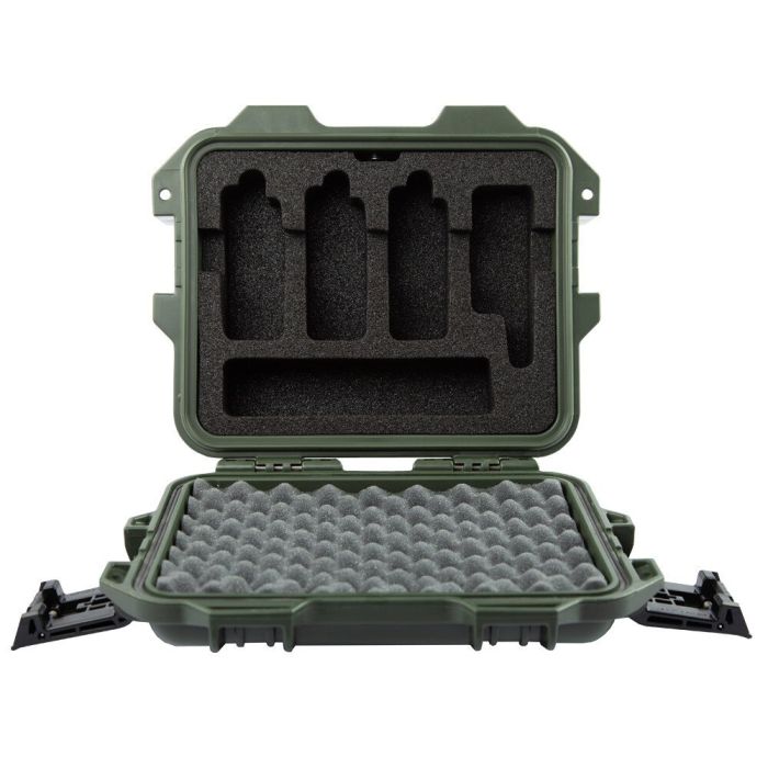 CarpSight Delkim TXI D 3+1 Alarm Storage Case, The CarpSight Delkim TXI D 3+1 Alarm Storage Case is the perfect way to keep your bite alarms organized and protected. This tough case features three spaces for alarms and one space for a receiver, plus a cutout for storing bite indicators, chain swivels, bobbins, and spare batteries. The case is available in black or olive green to match your carp fishing gear.