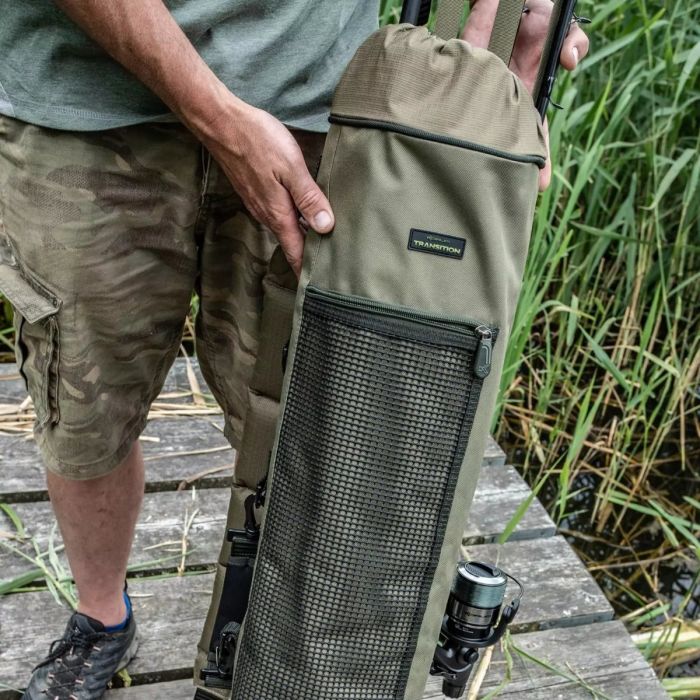 Le Carquois de Canne Korum Transition peut contenir jusqu'à trois cannes, offrant ainsi une protection à votre matériel pendant le transport. Avec ses dimensions de 100 x 18 x 18 cm, le carquois peut contenir trois cannes et votre manche d'épuisette, ce qui en fait une solution de rangement compacte à ajouter à votre brouette de pêche.