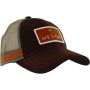 La casquette classique Westin Hillbilly en marron et orange avec un logo en forme d'écusson. Panneau arrière en maille pour la circulation de l'air et fermeture à bouton-pression pour un ajustement parfait.