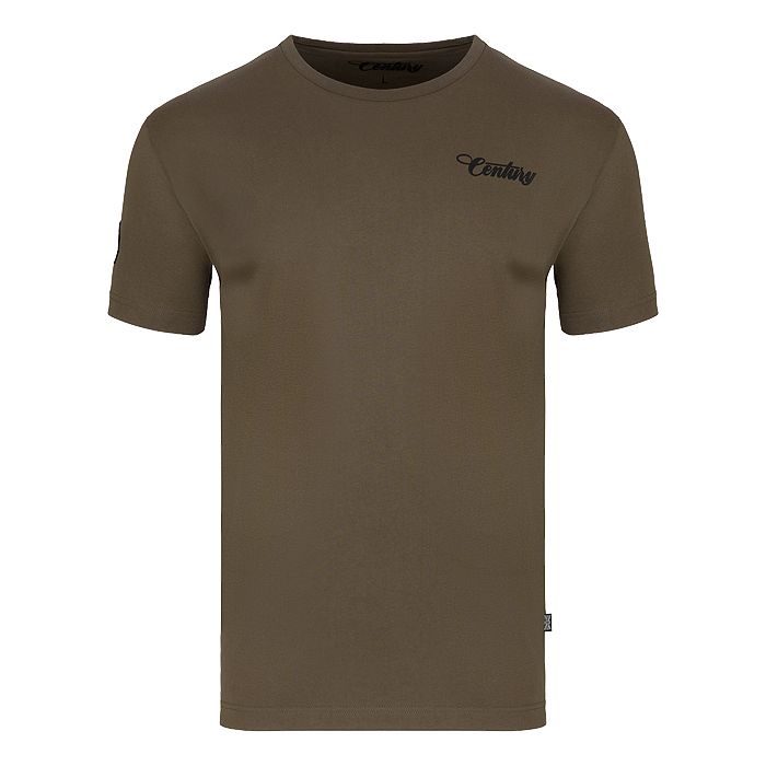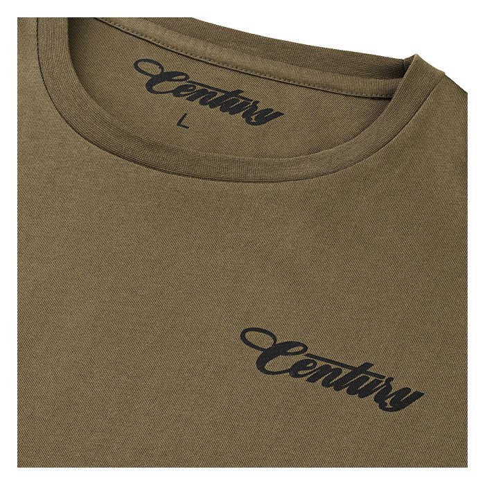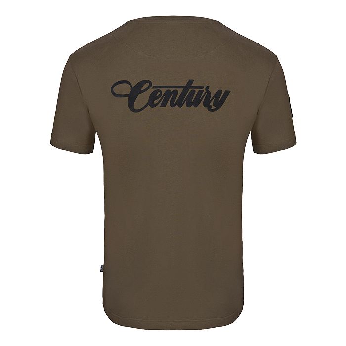T-shirt vert de haute qualité avec le logo distinctif de Century, idéal en toutes occasions. Doux et respirant, il arbore un badge discret du drapeau britannique sur la manche, un grand logo Century noir dans le dos, et un petit logo Century noir sur la poitrine. Son col crew du cou est ajusté pour un look tendance.