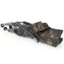 La doublure extérieure 100% polyester est dotée de motif camouflage Woodland élégant de Fox, ainsi que d’une bordure kaki et de 100% polyéthylène pour un confort accru. Les accoudoirs rembourrés en EVA sont intégrés au cadre pliable et l’appuie-tête est orné du logo Fox Series R-Series.