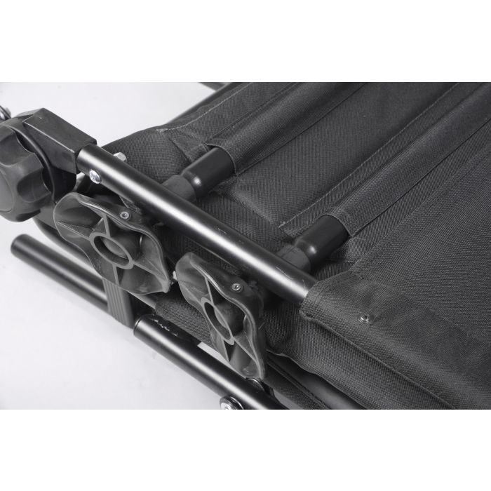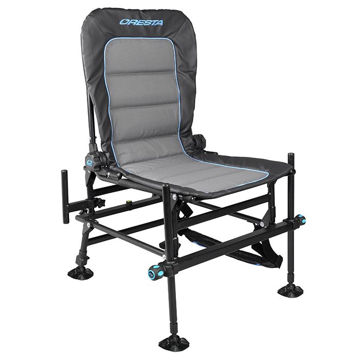 Avec ce produit, Cresta répond à la demande du pêcheur qui souhaite une chaise stable et surtout un peu plus haute. Cette demande est satisfaite grâce à l'astucieuse présentation du cadre. Le cadre est doté d'un double mécanisme de pliage, de sorte que l'assise atteint une hauteur de 45 cm, ce qui crée également un espace supplémentaire pour les accessoires sur les pieds avant. Le dossier est équipé de bras amovibles, sur lesquels il est possible de placer des accessoires tels que des supports de canne à pêche, un support de parapluie ou une plateforme d'appâts.