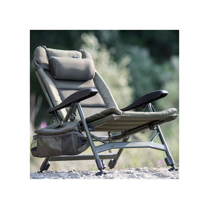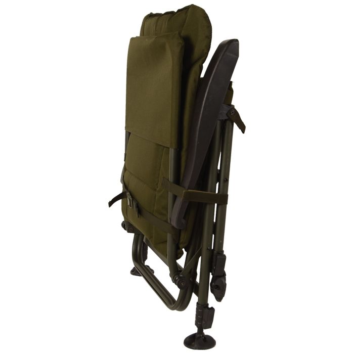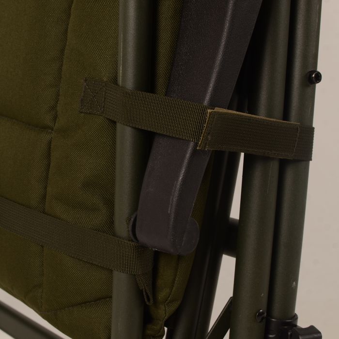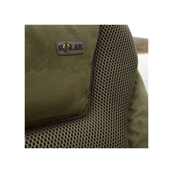 La chaise est dotée d’un matelas 3D DuraDore qui a des pochettes d’air pour plus de confort et est à la fois luxueux et résistant, doté d’une finition en vert carpiste avec un logo Solar subtil, des caractéristiques clés d’une chaise de pêche.