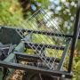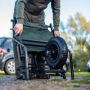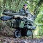 L'un des points que les pêcheurs vérifient dans un chariot est s'il est commode de le mettre dans le coffre d'une voiture ou de le ranger dans une tente de bivouac lors de sorties prolongées. Les dimensions de ce chariot, une fois plié, sont incroyablement compactes et la roulette de nez amovible permet de le transformer en un paquet complètement plat occupant un espace minimal dans un coffre de voiture, tout en se glissant facilement sous un bedchair lors d'une sortie prolongée.