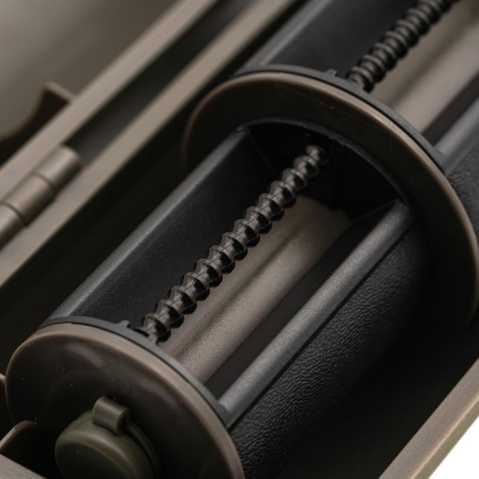 Comme les bas de ligne chod eux-mêmes, cela n’est que le début des avantages du Coffre Chod Korda. Les hameçons sont rangés sur des barres en aluminium anodisé et tourné. Cela assure que vos hameçons sont aussi bien aiguisés qu’ils l’étaient quand vous avez commencé à monter vos bas de ligne chod. Tandis que la plupart des coffres de bas de ligne sont conçus pour être ultra droits, le Coffre Chod a en fait été crée avec un angle pour vous assurer la courbe parfaite. L’équipe chez Korda a aussi crée un design de poignée unique ‘pop-up’. Cela vous permet de mouler vos bas de ligne chod à la vapeur pour créer la courbe parfaite, sans le risque de vous brûler les mains ! Ceci est une caractéristique innovante qui démarque ce Coffre Korda des autres produits sur le marché.