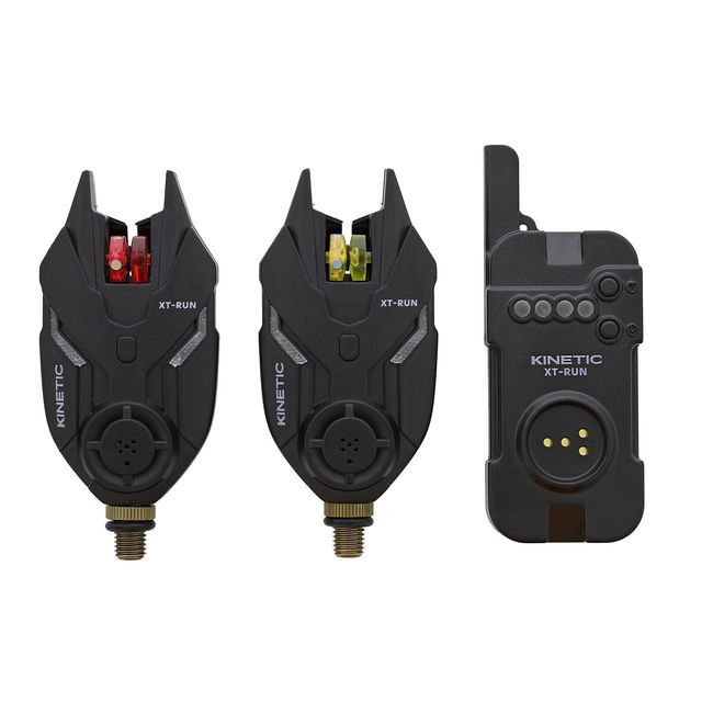 Introducing the Kinetic XT-Run Bite Alarms - the go-to solution for easy-to-use and reliable bite detection. With their sleek and modern design these alarms boast a range of cool features. One standout feature is the mute function, a valuable tool for carp anglers who prefer to fish in silence. Additionally, the receiver has a convenient vibration function, ensuring you won’t miss a single indication when in mute mode. Reliable 1:1 head-to-receiver wireless transmission that works seamlessly up to a range of 100 meters. The heads are powered by a widely available 9v battery, while the receiver runs on 3 AAA batteries (not included). The Kinetic XT-Run Bite Alarms are the perfect choice for anglers seeking a reliable indicator that offers excellent value for money. Available in 2+1 (red & yellow heads and receiver) and 3+1 (red, yellow & green heads and receiver).