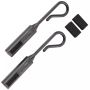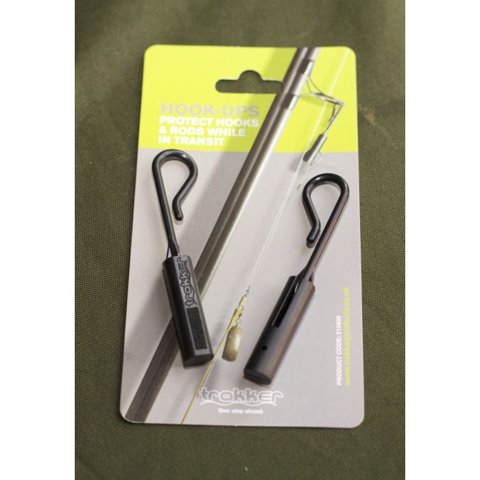 Les Hook-Ups protègent vos pointes d'hameçons pendant le transport. Ils empêchent également les hameçons d'endommager les anneaux de canne à pêche et d'accrocher les bagages, etc. De plus, ils ne rebondiront pas pendant le transport, même si votre fil est attaché, grâce au crochet de fixation qui absorbe les chocs. Pour l'utiliser, il suffit de faire glisser la pointe de l'hameçon dans la fente du corps du Hook-Up afin qu'elle se trouve en sécurité dans l'insert en mousse protectrice. Accrochez ensuite le crochet à l'anneau de votre canne et transportez-la comme d'habitude. Avec le temps, les hameçons à ardillon détériorent l'insert en mousse. Pour le remplacer, il suffit de faire sortir l'insert du côté opposé en insérant une aiguille à appât ou un objet similaire dans le petit trou. Insérez ensuite un insert de remplacement (pièces de rechange fournies).