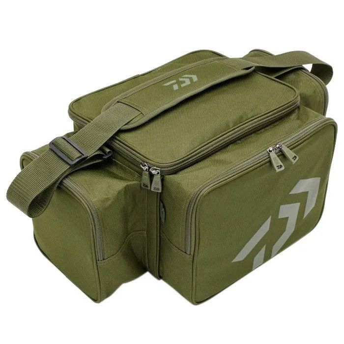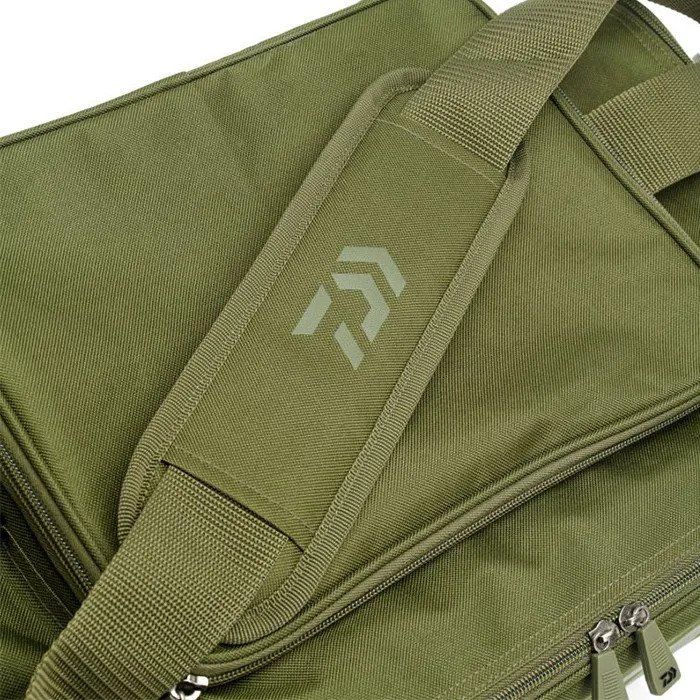 Daiwa Black Widow Compact Fishing Tackle Bag, The Daiwa Black Widow Compact Tackle Bag is the perfect storage solution for anglers on the go. With three outer compartments, it is designed to fit all the leading carp tackle and accessory boxes. The bag is made from a tough 500D material and comes fitted with a shoulder strap for easy transport. This bag is perfect for keeping all your tackle and accessories organized and within reach, so you can focus on landing that big fish.
