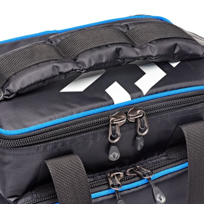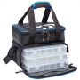 Two-layer case offers front access to three medium tackle boxes via zip round flap; Slim zippered inside pocket; The upper section is padded; Velcro adjustable partition; Slim zippered inside pocket on the lid; Reinforced base; Adjustable padded should strap; Velcro closure carry handles; Dimensions; Base: 30cm x 20cm x 16cm ; Top: 30cm x 20cm x 9cm;