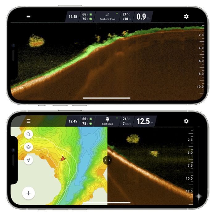 Pour la pêche à terre, les pêcheurs en mer peuvent simplement lancer le sonar, le remonter et obtenir les données de pêche dont ils ont besoin. Localisez les poissons, trouvez les caractéristiques à cibler ou cartographiez votre lac pour obtenir une vue d'ensemble.