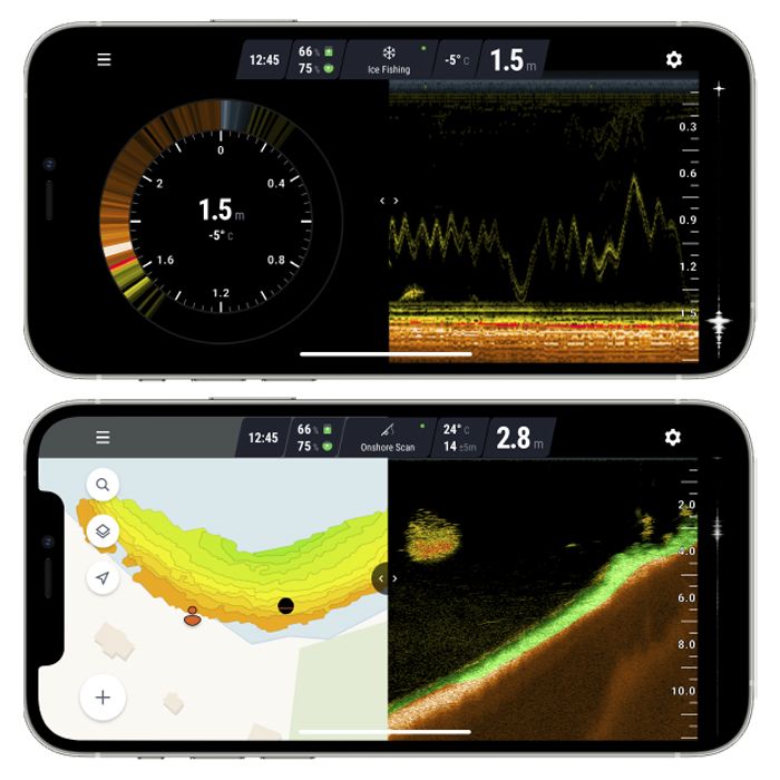 Avec une séparation des cibles de 1 cm (faisceau étroit) et de 2,4 cm (faisceaux large et moyen), vous pourrez facilement repérer les espèces cibles et suivre le moindre leurre lors de la pêche au jig vertical. Pêche intelligente avec l'application Fish Deeper. Des images détaillées et nettes. Distinguez les poissons prédateurs des poissons appâts, les poissons de fond du contour du fond. Visualisez la végétation, la structure, les poissons, le contour du fond ainsi que la dureté et la consistance du fond. Apprenez la profondeur et la température de l'eau.